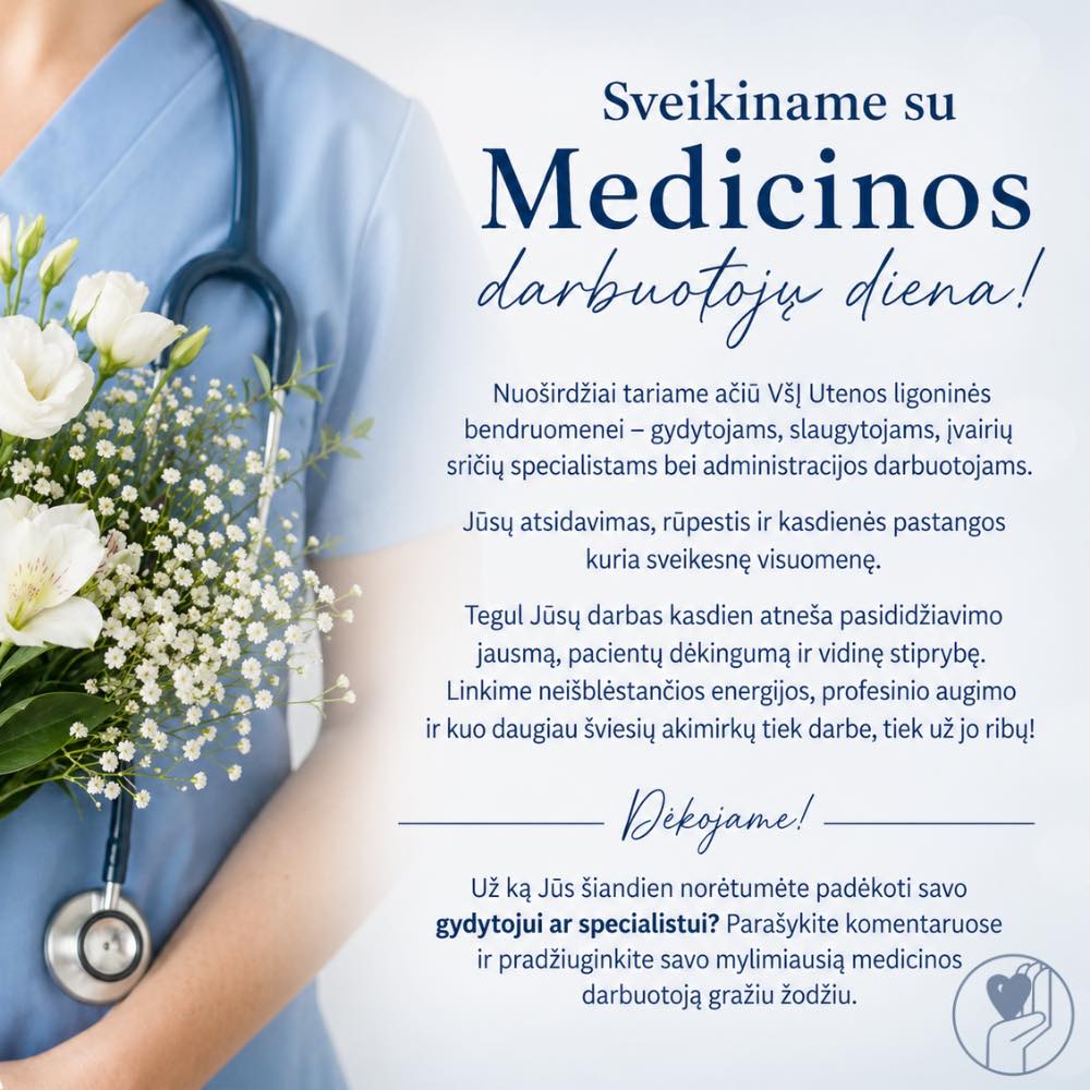 Tegul Jūsų darbas kasdien atneša pasididžiavimo jausmą, pacientų dėkingumą ir vidinę stiprybę. Linkime neišblėstančios energijos, profesinio augimo ir kuo daugiau šviesių akimirkų tiek darbe, tiek už jo ribų!